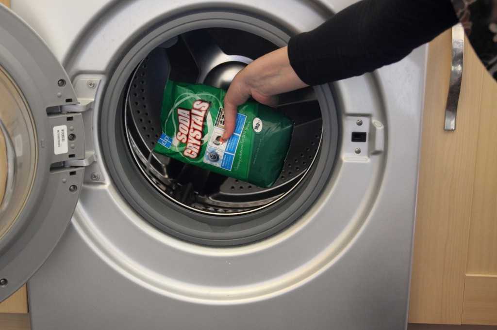 Есть и другой способ чистки содой. Пачку этого вещества делят на две части. Одну половину высыпают в контейнер для порошка, а вторую засыпают в барабан. Машину запускают в режиме быстрой стирки при максимальной температуре.