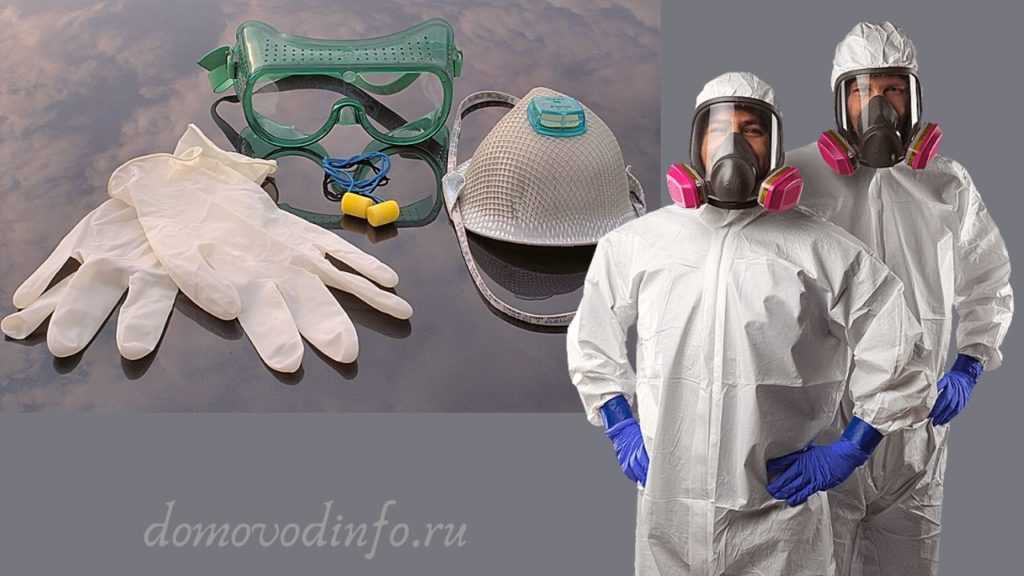 - Наденьте маску или респиратор, защитите глаза очками, а руки – хозяйственными перчатками.