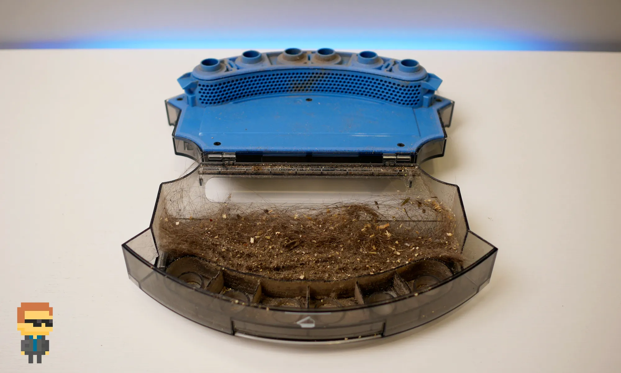 Продвинутая система фильтрации не оставляет в воздухе даже самых мелких частичек пыли. Затянутая вакуумом пыль попадает в общий отсек пылесборника, крошки и волосы удерживаются первичным фильтром, а частицы мелкой фракции остаются на специальном пористом фильтре.