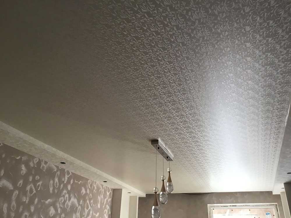 - Специфика материала, который лежит в основе полотен тканевых потолков, не позволяет создать большое разнообразие цветов и фактур. Такие фактуры как например глянец, вы не найдете среди тканевых натяжных потолков.