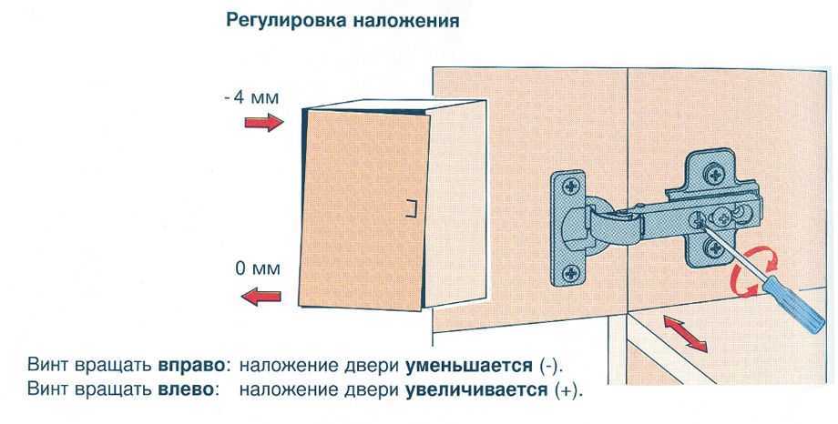 Перед настройкой петель на дверных полотнах шкафа, необходимо решить, по какому принципу будет выполняться работа. Существует несколько видов регулирования:
