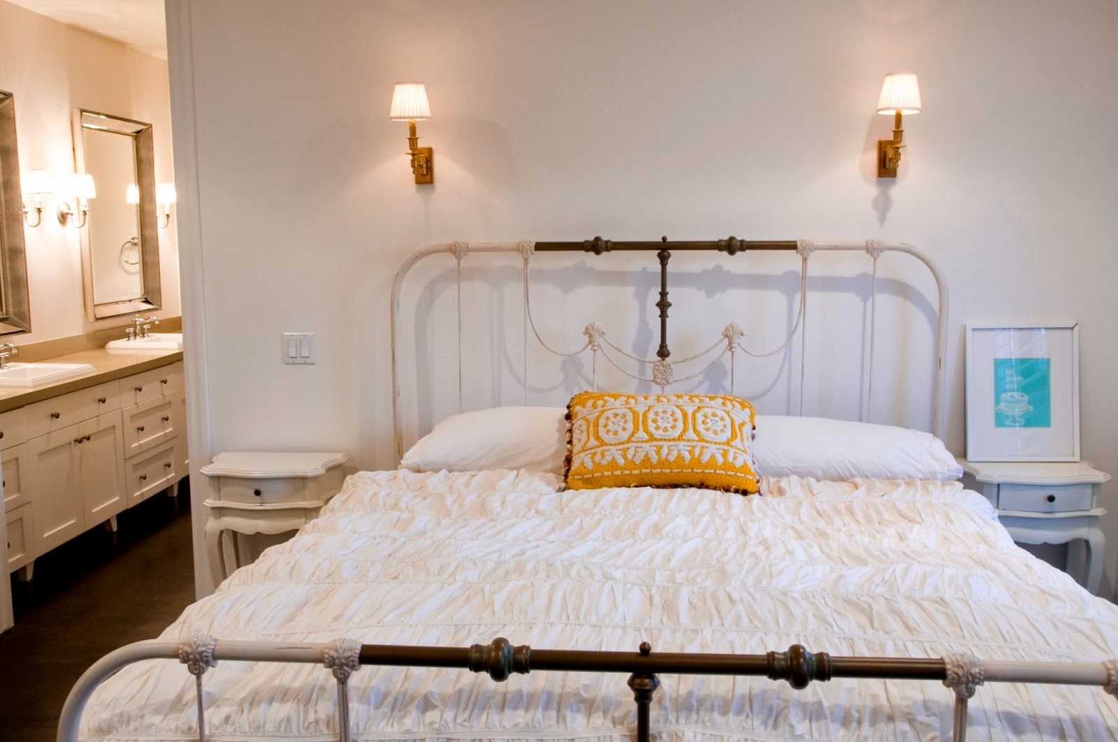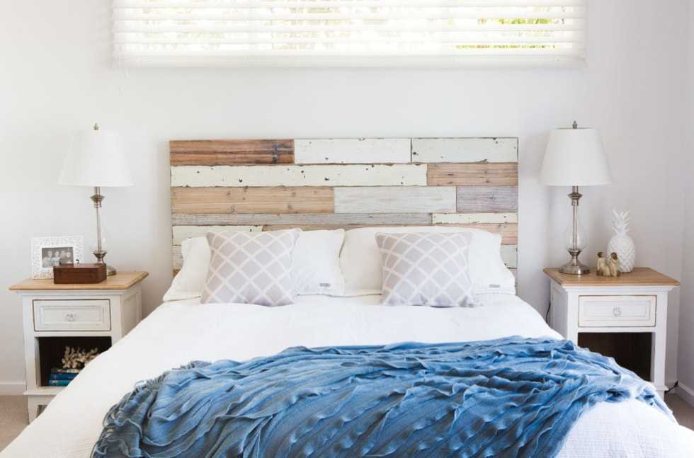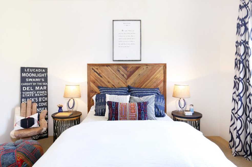 Стильное изголовье может сделать спальню более уютной, по крайней мере, намного лучше, чем просто голая стена. А кровать станет привлекательным предметом мебели и поможет определить дизайн комнаты. Изголовья имеют свою историю, в старину изголовья кроватей служили для обеспечения тепла. Как правило, они были сделаны из дерева, часто вырезаны с замысловатыми узорами. Более высокие и богато украшенные изголовья стали символом статуса и богатства. Сегодня все проще, изголовья удерживают матрас на месте, не дают нашим подушкам падать и тереться о стены, а также обеспечивают удобное место для поддержки подушек для чтения или завтрака в постели, если того пожелаете. А на счет дизайна, многие предпочитают простой деревенский, или как называют «фермерский» стиль, вот например такой, как вы видите на этом примере. Как это сделать, можете прочитать в инструкции на сайте автора.