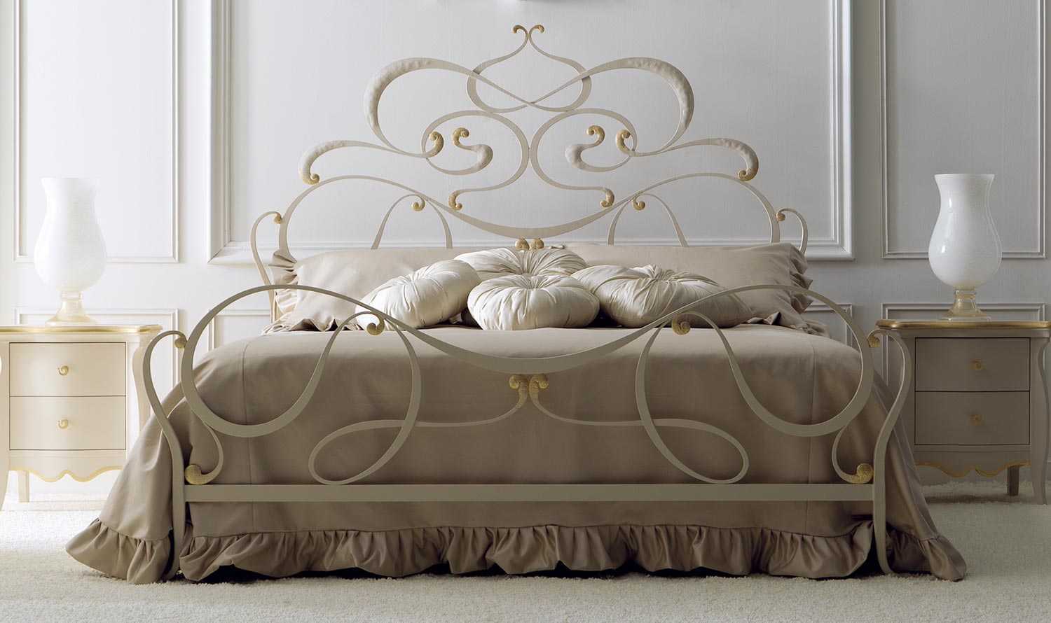 Очень необычно смотрится белая кованая кровать с серебряными вставками или без них. Модель такого плана в сочетании с другими белыми элементами декора преобразит вашу спальню, превратив обычную комнату в королевскую.