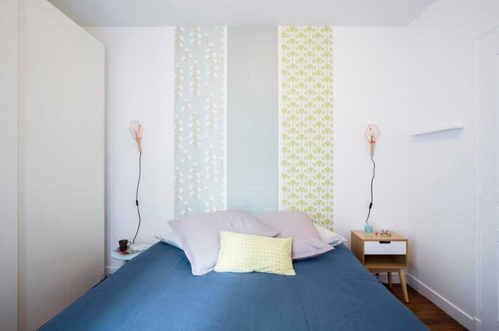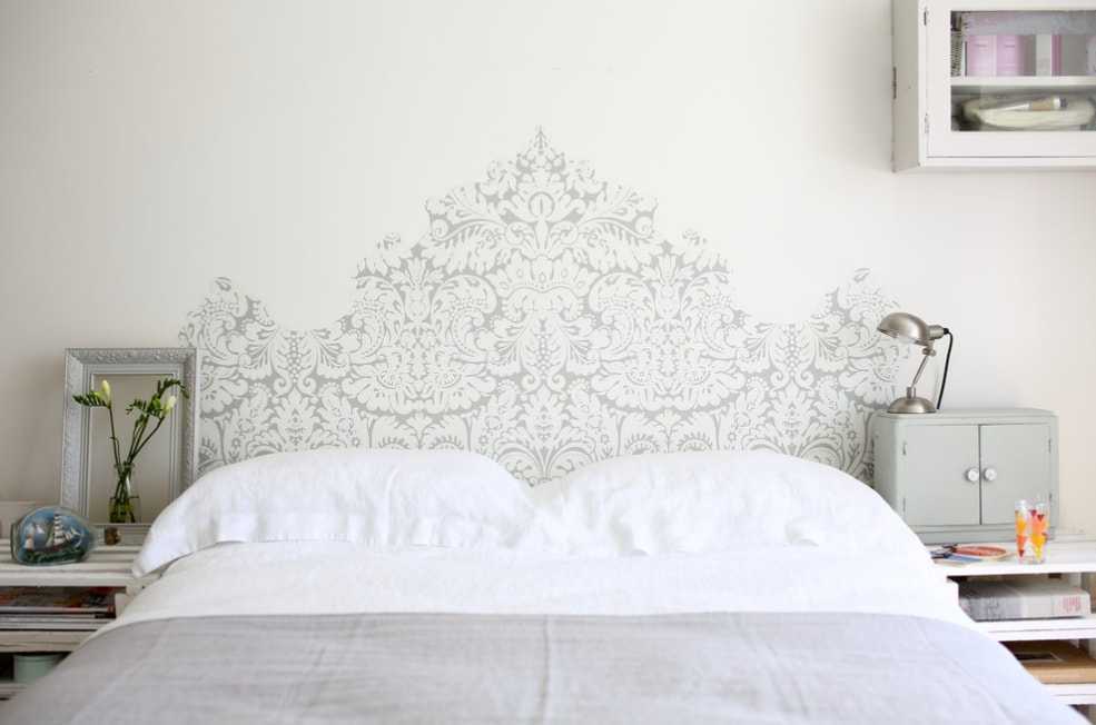 Кстати, изголовье вовсе не обязательно должно быть выполнено из классических материалов. Довольно оригинально смотрятся нарисованные варианты или же с акцентом из обоев.