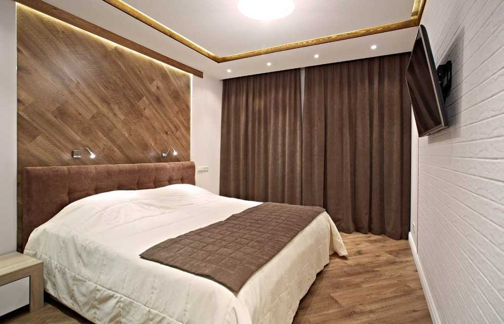 - Так, заменить прикроватные тумбы можно полочками, вмонтированными в стену на уровне кровати.