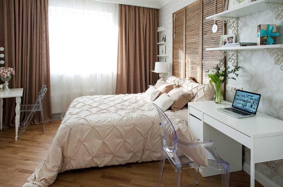 В большой, просторной спальне воздержитесь от размещения мебели строго по периметру вдоль стен. Такой прием визуально негармоничный. Для небольших же комнат существуют иные рекомендации по эргономике, которые помогут существенно сэкономить пространство в спальне: