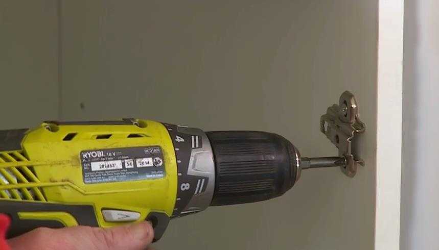 Важно не делать слишком большие углубления, достаточно 1,2 см. Вставьте чашки в отверстия и прикрутите шурупы в дверной части крепления.