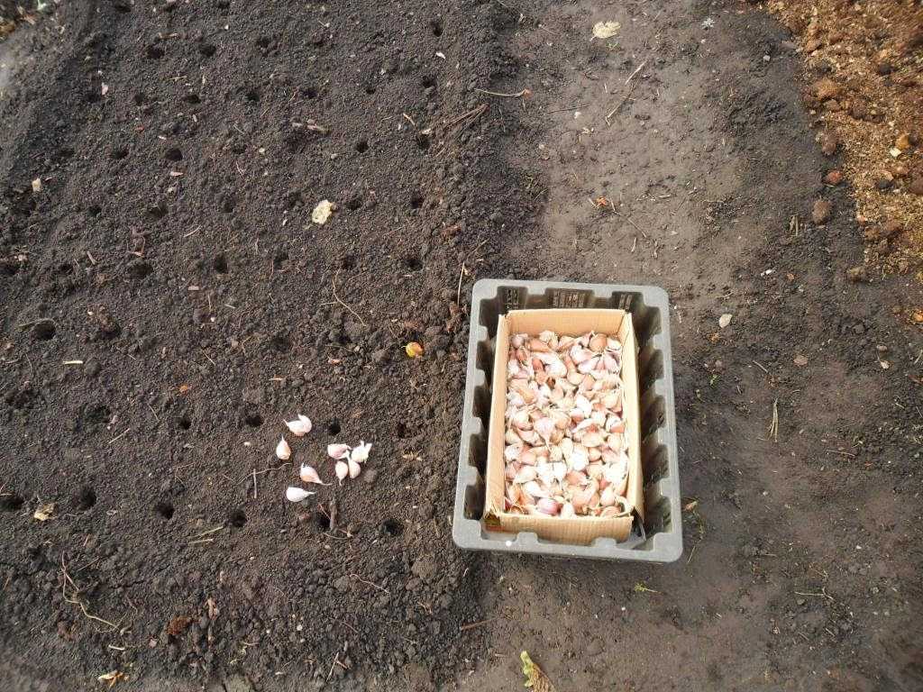 Подзимнюю посадку чеснока производят в лунки или бороздки.