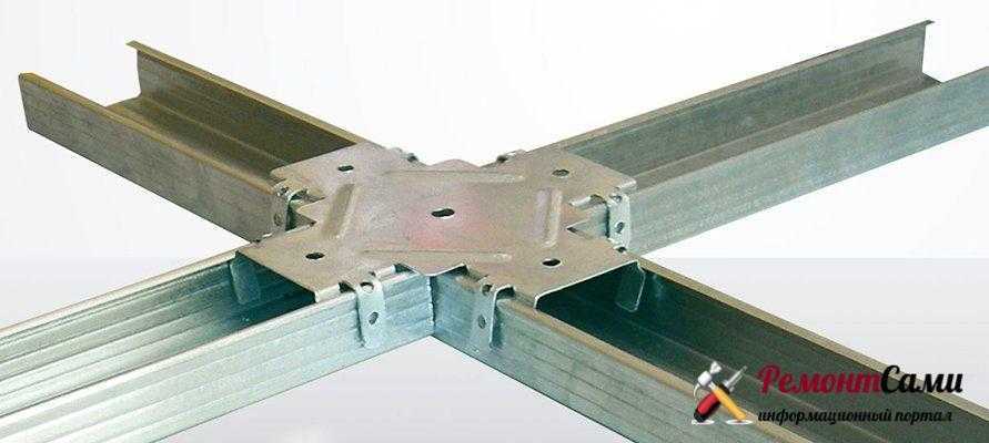 - В тех зонах, где предусматривается крепление осветительных устройств, рейку или профиль нужно будет усилить перемычками. Крепят их путем: