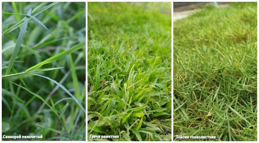 - полевица побегоносная. Данная трава агрессивно распространяется, пуская ползучие побеги, отчего развитие сорняков становится невозможным. Корни неглубокие, потому засуху переносит плохо. Любит рыхлый супесчаный или суглинистый грунт. Производит более мелкие семена, чем прочие травы.