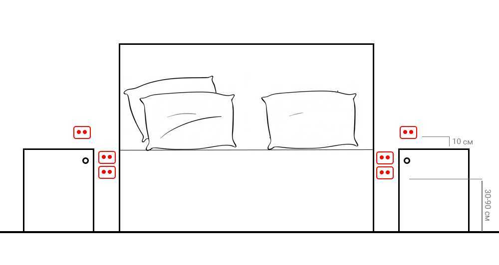 Количество розеток около двухспальной кровати увеличивается вдвое