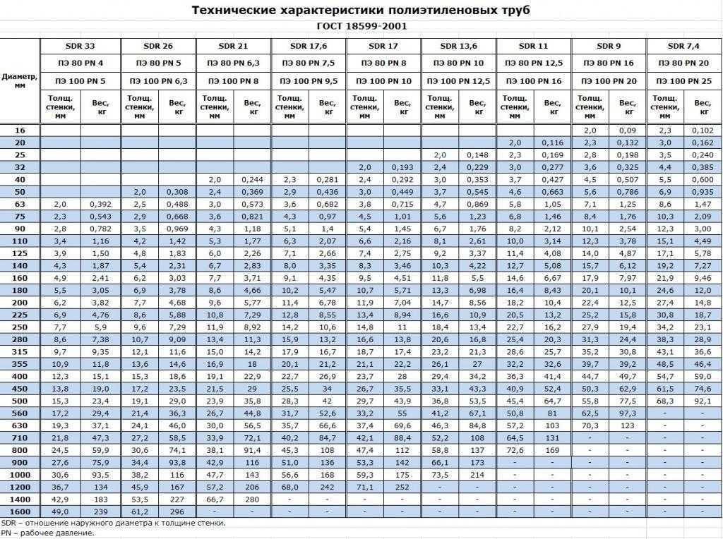 - SDR 11, 13,6 и 17 (12, 10 и 8 атм) – применяются при прокладке слабонапорных магистралей для подачи питьевой воды, хозяйственных нужд с целью орошения, а также в водоочистке;