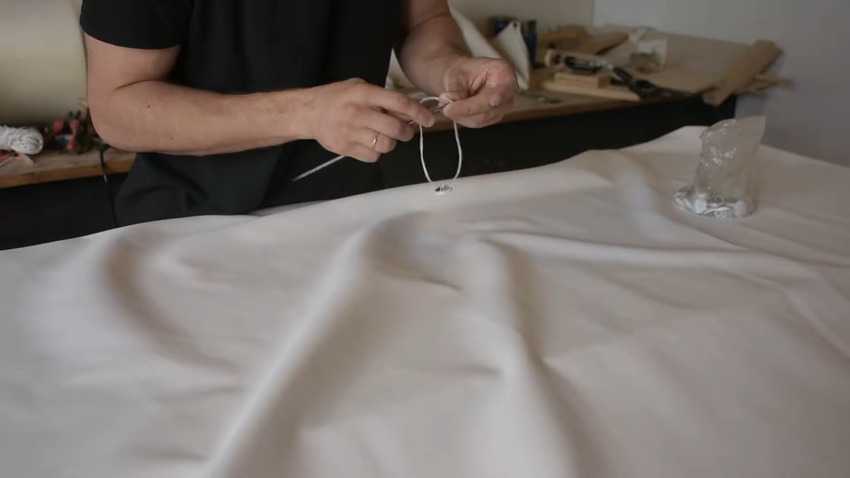 Как закрепить пуговицу с лицевой стороны изголовья: