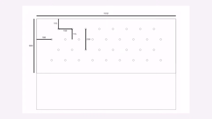 Затем сделайте разметки, как указано на фото, где белые круги – это будущие отверстия. |