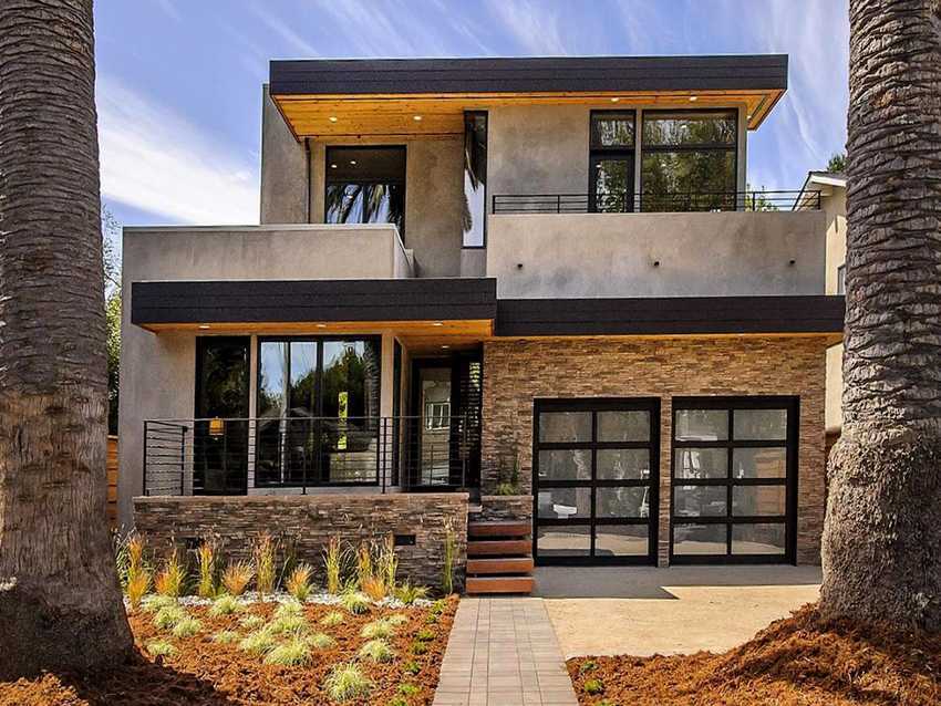 Для отделки дома из кирпича и блоков отлично подходит штукатурка, отделочный камень или плитка, а также вентилируемые фасады с любой отделкой.