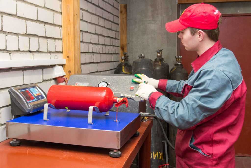 Ежегодный осмотр заключается в контроле утечки газа из баллона. Если она большая, огнетушитель ремонтируют и перезаряжают. При несоответствии других параметров устраняются причины отклонений от нормы и производится перезарядка. При нормальном состоянии огнетушители должны перезаряжаться через 5 лет. При перезарядке баллон изнутри очищается от остатков порошка, испытывается на герметичность, проверяется шланг и запорное устройство.
