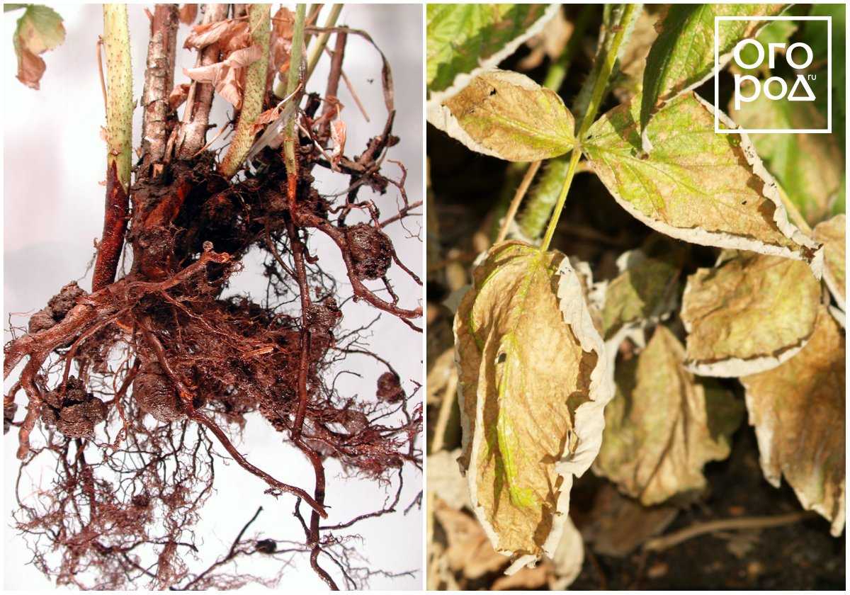 Если вы заметили, что у малины листья желтеют и опадают, побеги вырастают короткими, ягоды мельчают и теряют вкусовые свойства, проверьте корневую шейку и корни куста на наличие наростов. Если опасения подтвердились, примите следующие меры