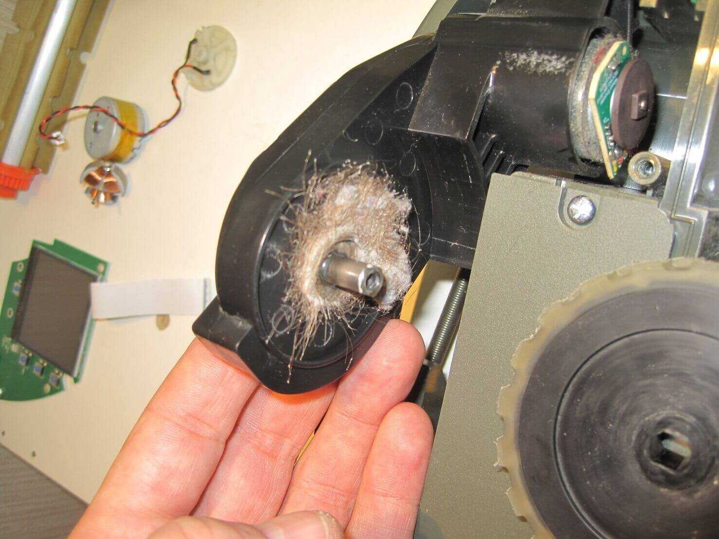 Такую проблему легко устранить, почистив детали. Очищать их необходимо периодически. Во время уборки на щетки постоянно наматываются волосы и шерсть. Достаточно аккуратно отсоединить щетки, чтобы удалить загрязнения. После установки может возникнуть шум в работе щеток. Это говорит о том, что они были неправильно закреплены. Потребуется снова отсоединить щетки от робота-пылесоса и установить их правильно.