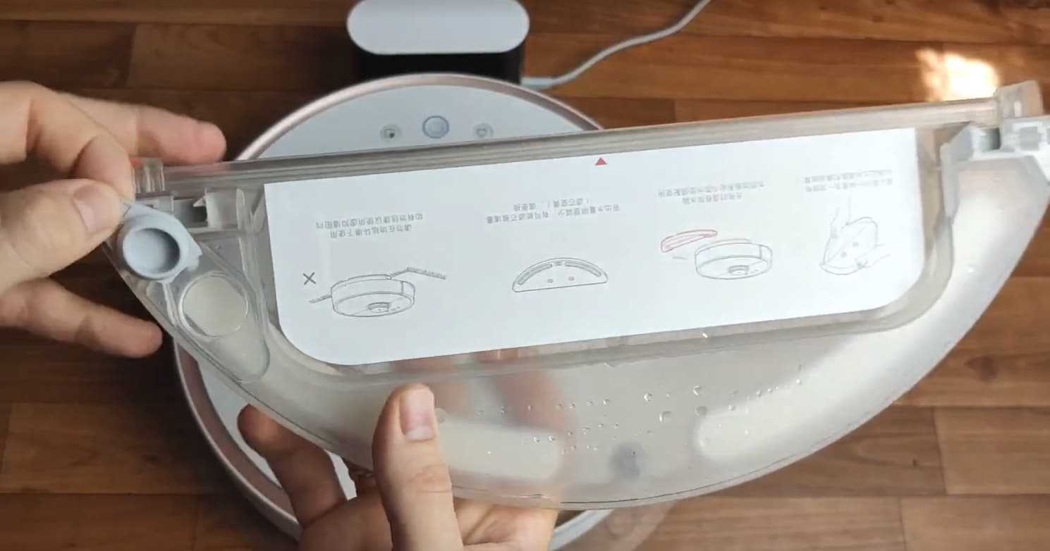 В процессе своей работы вода из контейнера будет поступать на салфетку из микрофибры в автоматическом режиме, поэтому настоятельно не рекомендуется, чтобы емкость, если в ней осталась вода, была внутри робота-пылесоса, когда он не движется и не работает. Из-за этого под устройством достаточно быстро будут образовываться лужи. Обязательно надо вынимать контейнер с водой (даже если ее осталось немного) из робота-пылесоса в процессе зарядки устройства.