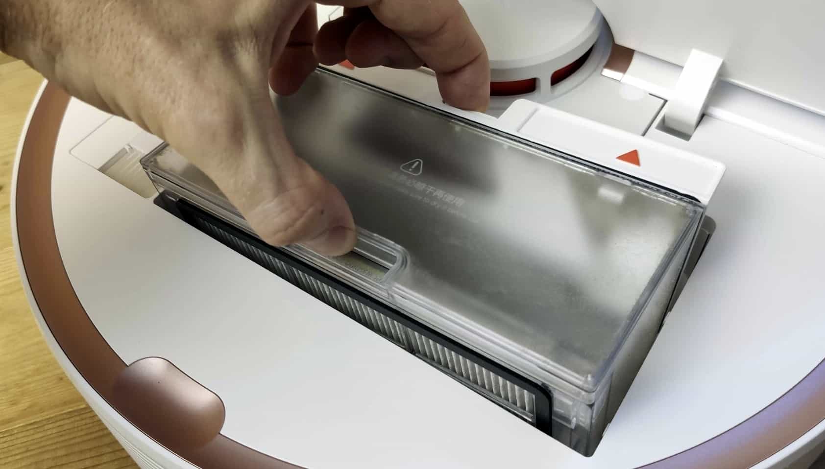 По завершению влажной уборки помещения робот-пылесос остановится. После этого необходимо вынуть контейнер, вылить оставшуюся воду (не рекомендуется хранить емкость с водой внутри устройства). Для последующей беспроблемной эксплуатации пылесоса рекомендуется оставлять контейнер для воды пустым.