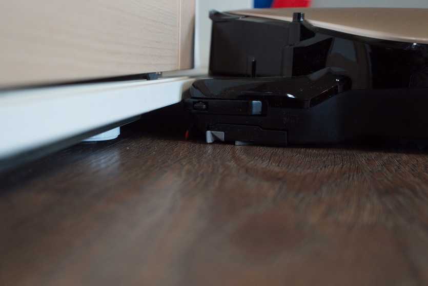 - Узкая зона чистки. Высота робота в 8 см позволяет проникать ему в недоступные для других пылесосов места.