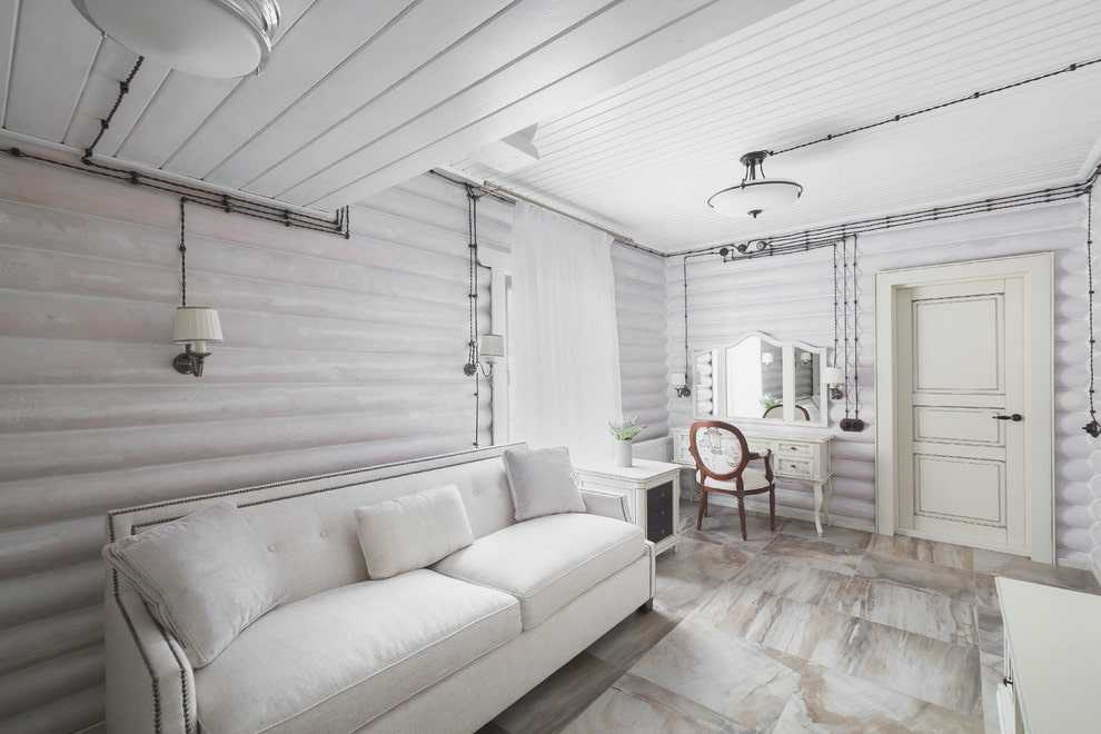 Электрические провода, протянутые вдоль стен и по потолку, создадут ретро-атмосферу в убранстве дома. Подчеркнут такой колорит кнопочные выключатели и стилизованные под них розетки.