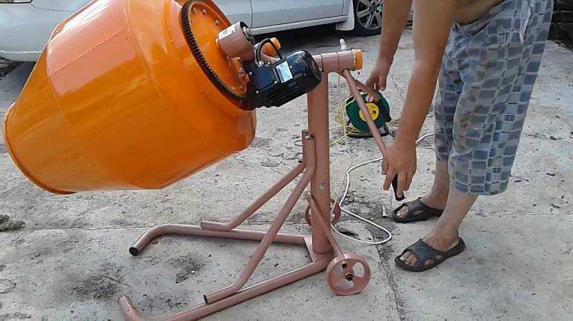 Пригодна не только для домашних, но и для профессиональных строительных работ. Объём барабана составляет 200 литров. Сразу после окончания цикла приготовления цементного раствора можно запускать следующий. Используется мощный электродвигатель. Партию раствора можно приготовить за две минуты.