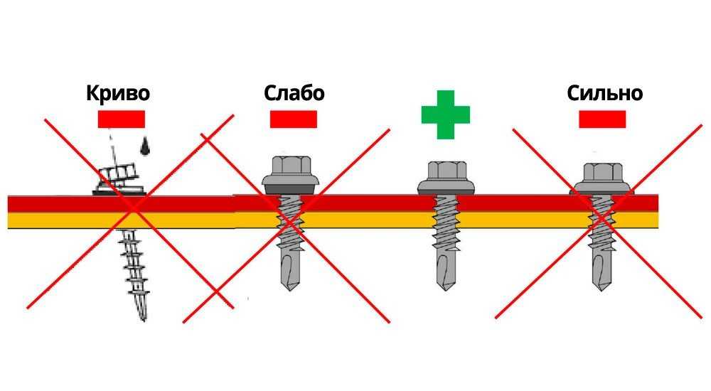 Прежде чем вкручивать саморезы в профилированный лист, нужно понять, какое положение они должны занять.
