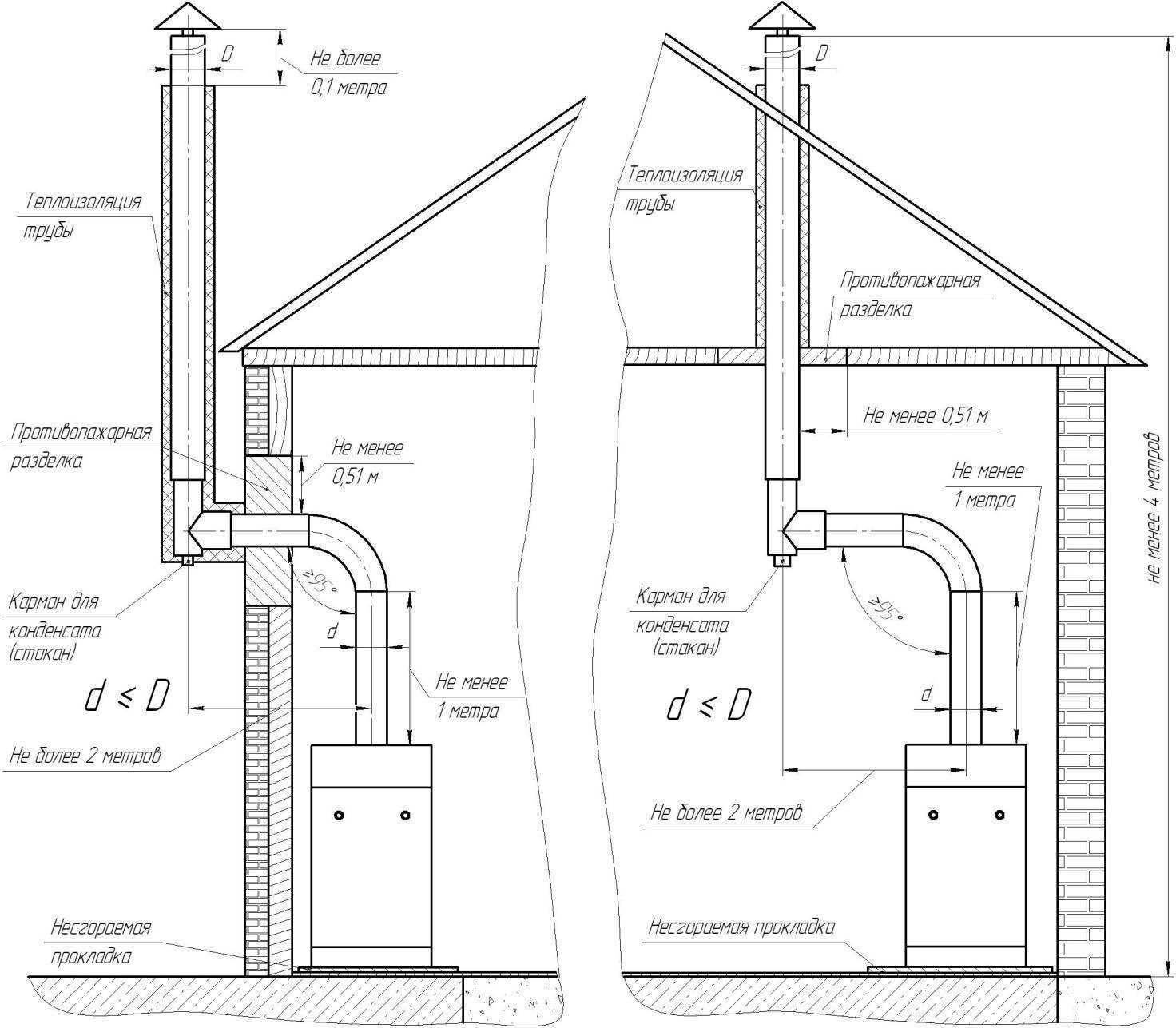 3. Высота дымохода должна быть не меньше чем 5 метров, независимо от строения.