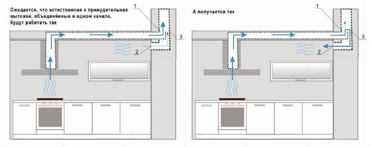 5. Горизонтальные участки вытяжки должны состоять из двух каналов: один для выведения дыма, второй для прочистки.