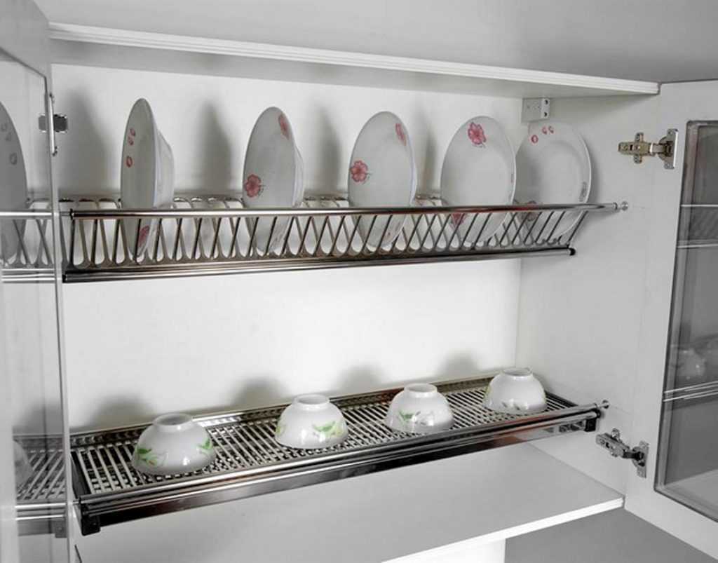 Многие заказывают изделие под гарнитур. При этом вначале снимаются нужные размеры. Если нет желания, чтобы внутри мебели скапливалась влага, стоит отдать предпочтение открытым аксессуарам. Так изделия высохнут намного быстрее. Правда, пыль может оседать на поверхности, но этого не произойдет, если использовать тарелки и чашки ежедневно.