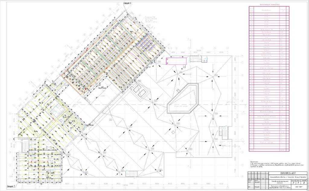 - привязки устройств ПТ и труб к координационным осям строения либо элементам конструкций.
