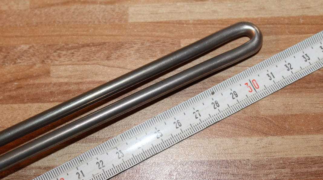 Отличительной чертой этого аналога является оболочка, изготовленная из нержавеющей стали, которую шлифуют по максимуму. Это необходимо для того, чтобы тэн мог войти в форму с минимальным зазором между трубкой и стенками формы. Стандартный зазор не должен превышать 0,02 миллиметра. Вот так плотно он должен входить.
