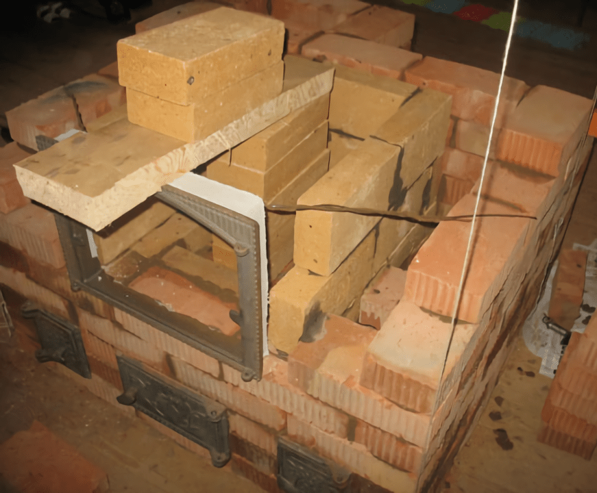 Конструкция изготавливается из глиняного красного кирпича с облицовкой (футеровкой) огнеупорным материалом