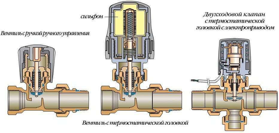 Термостатический вентиль, он же теромрегулятор, предназначен для изменения объема теплоносителя, проходящего через прибор. Изменения зависят от температуры окружающей среды. Все виды терморегуляторов включают два основных элемента: терморегулирующий клапан и термоголовку – механизм воздействия на клапан. В самых сложных модификациях терморегулирующий клапаном управляет выносной термодатчик, отправляющий команды термоголовке в зависимости от изменений температурного фона. Термостат с термоголовкой, оснащенной сильфонным механизмом, позволяет автоматизировать поставку теплоносителя в прибор. Самый простой вариант термостата оснащен термоголовкой для ручного управления. При необходимости простую механическую термоголовку можно запросто заменить на сильфонную. Все варианты терморегуляторов подразделяются на устройства для однотрубных и двухтрубных схем отопления. Термостаты для двухтрубных схем рассчитаны на значительные перепады давления. Подразделяются на две группы: с настройкой гидравлического сопротивления и без этой функции. Установка терморегуляторов рядом с приборами отопления дает возможность задать оптимальную температуру для каждого из помещений по его назначению. Назначение термостатического вентиля. Обязательные составляющие терморегулятора. Терморегулятор с выносным термодатчиком. Термоголовка для автоматического управления. Терморегулирующий клапан или вентиль – основной компонент. Регулирующее устройство для однотрубных схем. Термостатический вентиль для двухтрубных систем. Плюсы установки терморегуляторов для приборов отопления