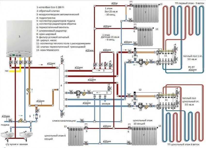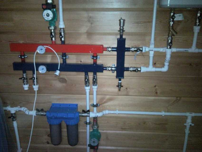 Трубы меньшего диаметра являются перемычками между основными. По ним будет циркулировать теплоноситель. Нужно запомнить, что в нижнем патрубке необходимо отставить отверстие для монтажа ТЭНа. Если нагревательных элементов будет несколько, они располагаются по разные стороны от бака и не должны соприкасаться. Отверстие оставляют и под помпу. ТЭН надежно закрепляют болтами. Отверстие под него можно проделать болгаркой или автогенов.