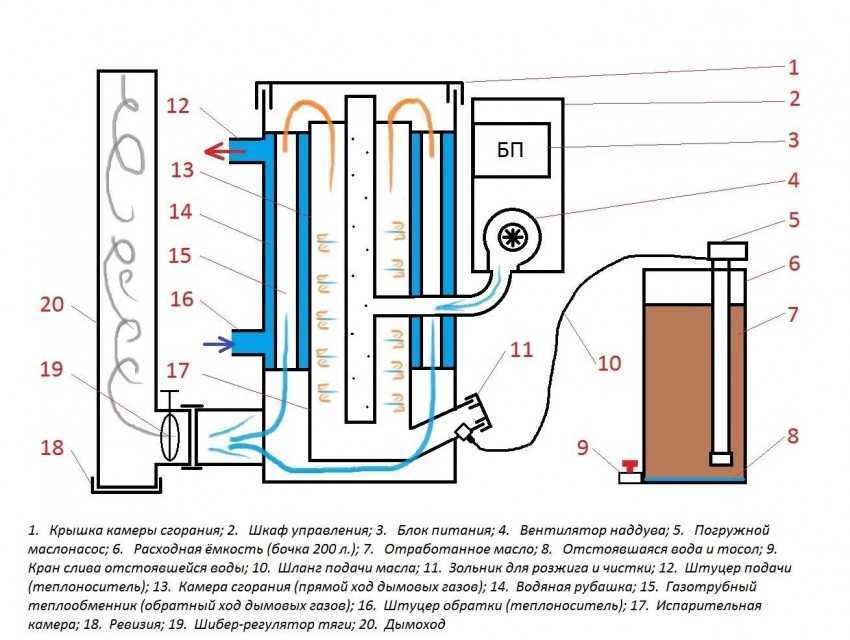 Во-вторых, в качестве теплоносителя здесь должно выступать минеральное масло, по возможности – трансформаторное масло. Оно должно заполнять бак нагревательного прибора на 85%. Остальное пространство оставляется под воздух. Он необходим для предотвращения гидроударов. В-третьих, в случае использования чугунного бака для обогревателя используется стальной ТЭН. Для бака из нержавейки подойдет медный ТЭН. В данной системе нельзя использовать магниевые аноды.