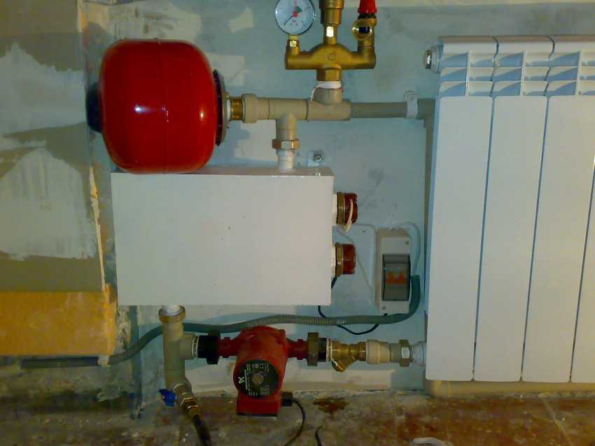 Если обогреватель для комнаты своими руками получается объемным и естественная циркуляция в нем теплоносителя невозможна, прибегают к помощи помпы. Она располагается в нижней части оборудования. Помпа не должна соприкасаться с ТЭНом.
