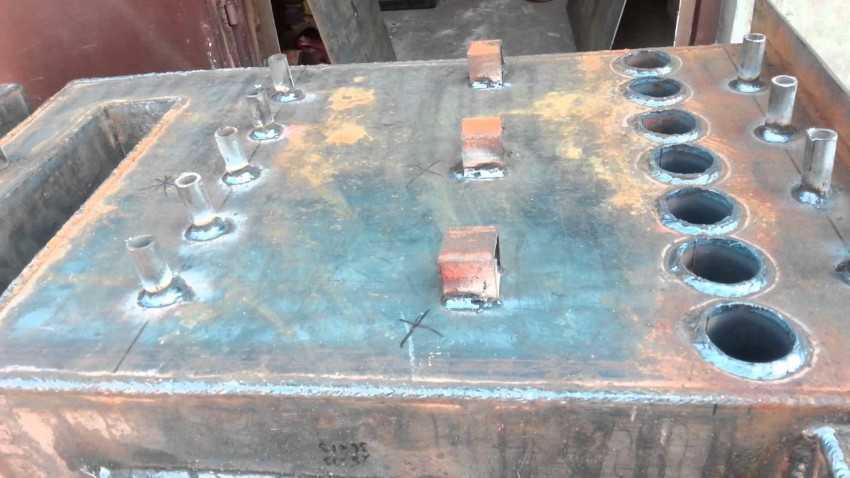 квартиры своими руками начинают с подготовки бака. Если была взята старая, чугунная батарея, ее нужно разобрать на секции и тщательно прочистить от загрязнений и ржавчины, обязательно обезжирить внутреннюю поверхность. Если нужен обогреватель повышенной мощности, то готовят сварную конструкцию из подготовленных труб, где трубы большего диаметра располагаются горизонтально.