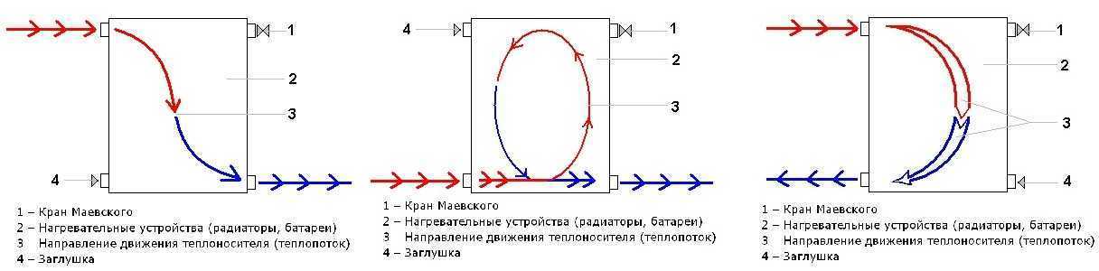 Выходов у радиатора с боковым подключением четыре. Два из них заняты подающим и обратным трубопроводом, на третьем ставят кран маевского. Четвертый вход закрывается заглушкой. Она, как и большинство современных батарей, чаще всего выкрашена белой эмалью и совершенно не портит внешний вид.
