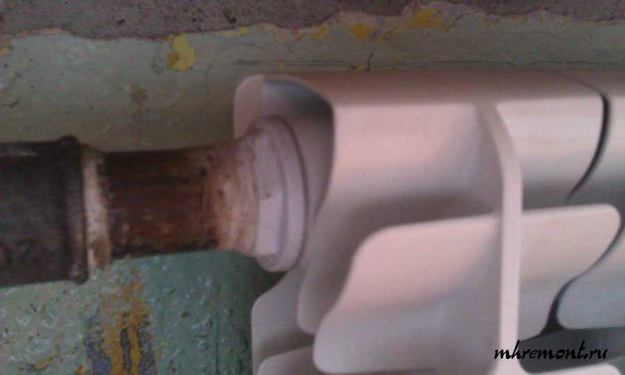 При межсекционных течах чугунной батареи на небольшом расстоянии от подводок. Если секций много, длины радиаторного ключа часто не хватает для того, чтобы добраться до нужной пары ниппелей со стороны глухих пробок. Единственное решение — разбирать радиатор со стороны подводки;