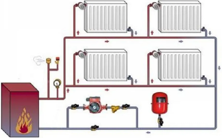 Схема закрытой автономной системы обогрева с циркуляционным насосом