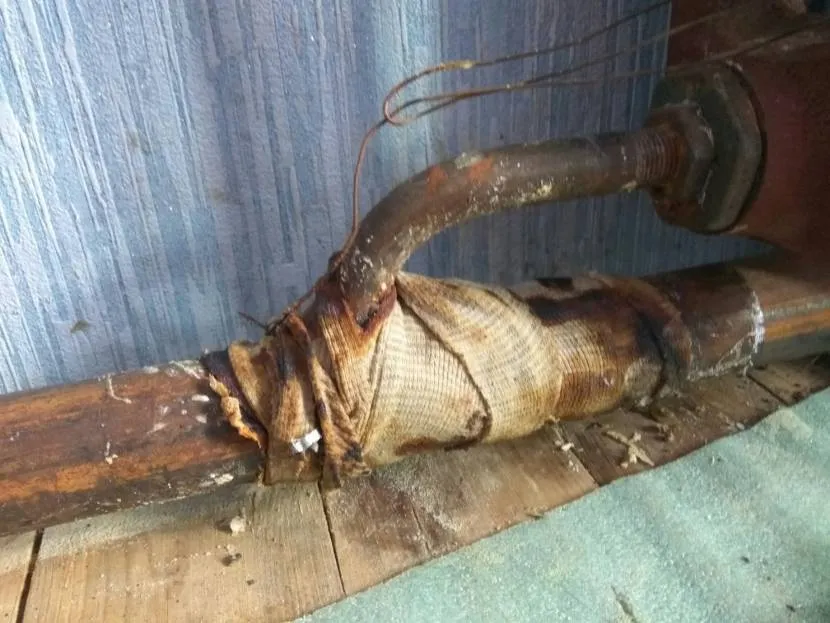 Самым не простым считается вопрос, чем заделывать течи в отопительных трубах из металла? Ведь ремонтировать их электросваркой нельзя – после использования такого способа процессы ржавления будут протекать в несколько раз быстрее. Если дыра в трубе отопления появилась маленькая, её нужно попробовать заделывать при помощи хомута и прокладки из резины, полностью перекрывающей область протечки. Как убрать течи в отопительных трубах без хомутов или бандажной системы? В данном случае понадобиться проволока из стали, которую нужно будет более чем со всей серьезностью обмотать вокруг трубы и хорошо закрепить. Однако прежде проблематичный участок следует высвободить от коррозийного разрушения, влаги, остатков краски и грязи, чтобы уменьшить риск последующего протекания носителя тепла.