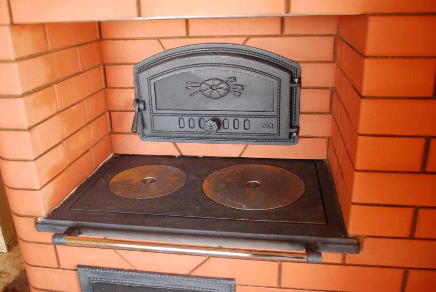 - Обкладывается уже установленная дверца и ставится плита. Рекомендуется для приготовления пищи покупать именно чугунный вариант.