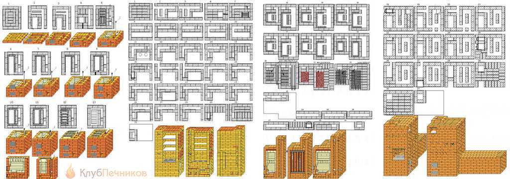 Порядовка – это набор чертежей, для поэтапного возведения печи. На чертежах изображён каждый ряд кирпичей в подробностях. Вносить поправки в эти схемы категорически не рекомендуется, так как это проверенные работы.