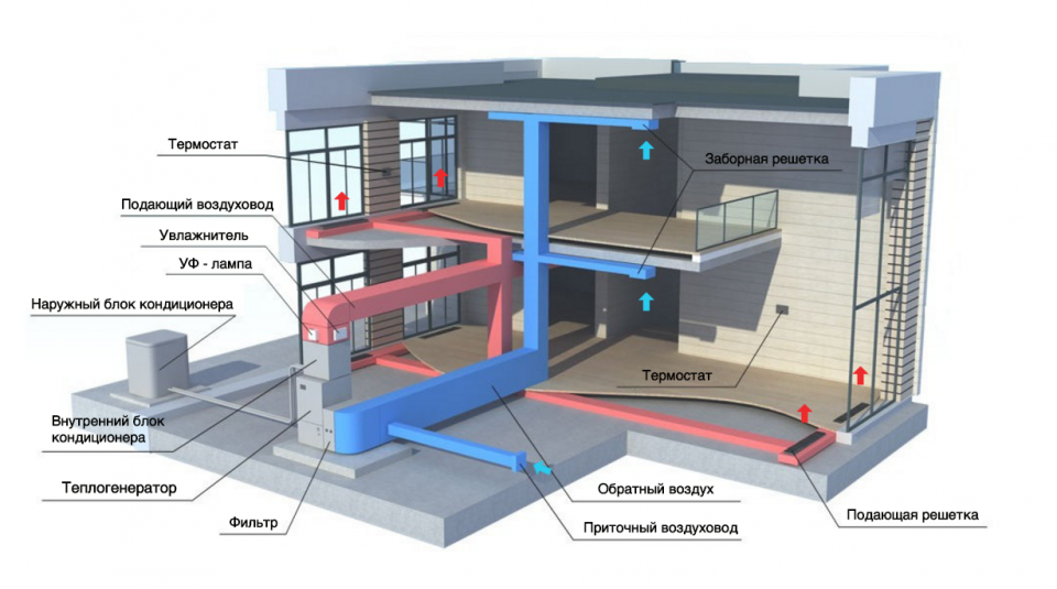 - Механические системы. Движение воздушного потока по воздуховодам обеспечивается вентиляторами.
