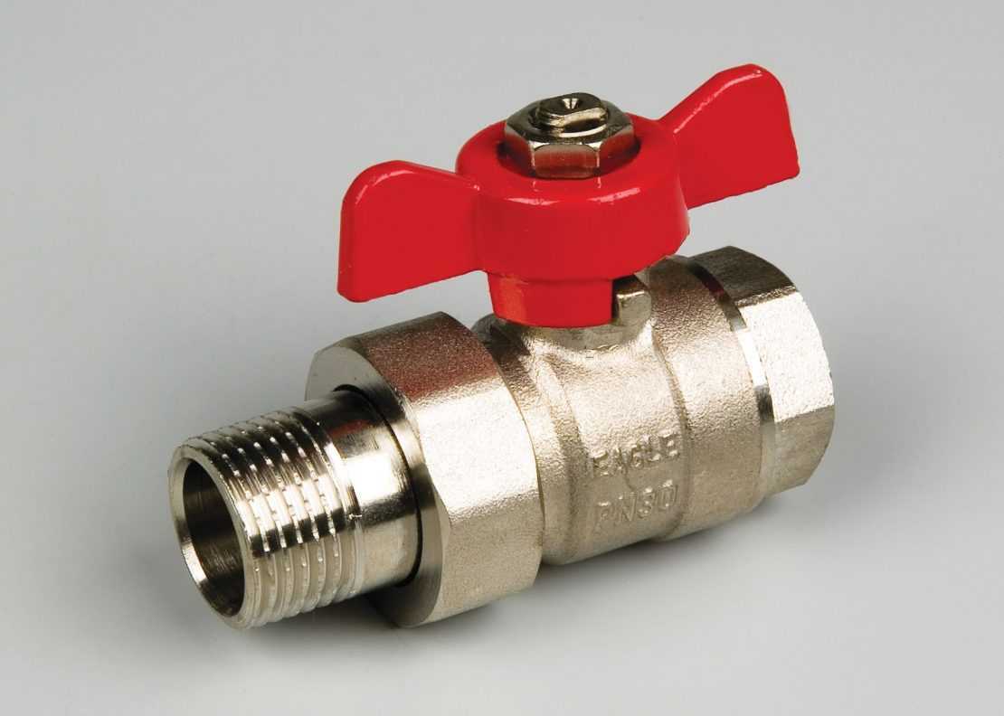 Самый распространенный вид запорных устройств – это шаровые краны, изготавливаемые из латуни или полипропилена. Главным элементом в них является стальной шар с выборкой соответствующего диаметра для прохода воды. Он прикреплен к штоку, вращением которого и осуществляется перекрывание теплоносителя. При открытом положении крана выборка в шаре совмещается с внутренним проходом изделия, в закрытом — поворачивается относительно него на 90º. Направление потока при этом не изменяется.
