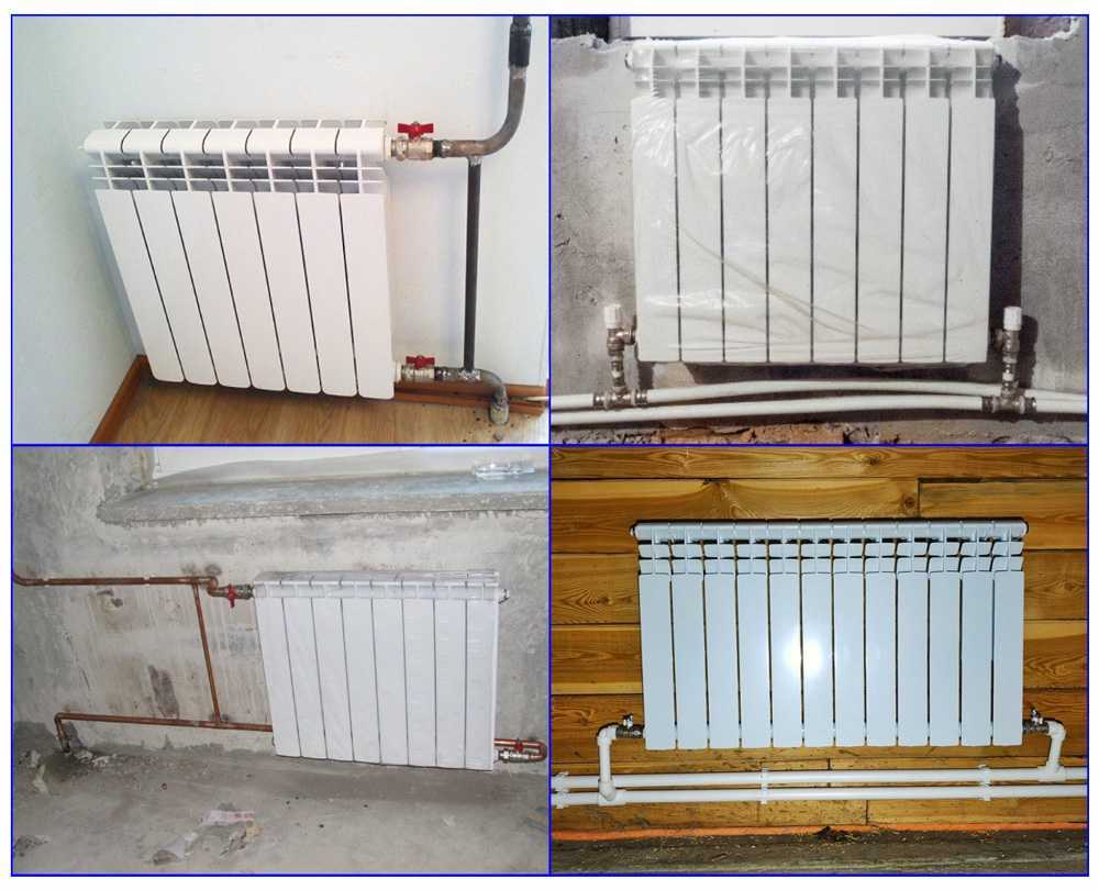 Рис. 10 Примеры подключения батарей к трубам из разных материалов