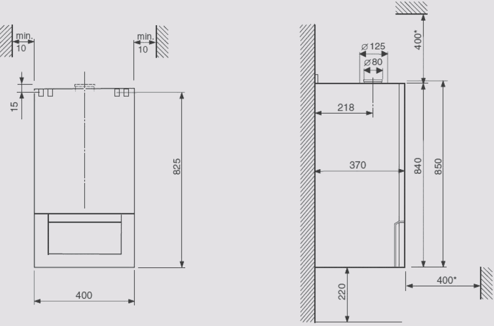 Данные дымоходы в большинстве случаев выводятся за стенку, на которой крепится сам котёл. Также возможен их отвод за любые другие стены (с удлинением).