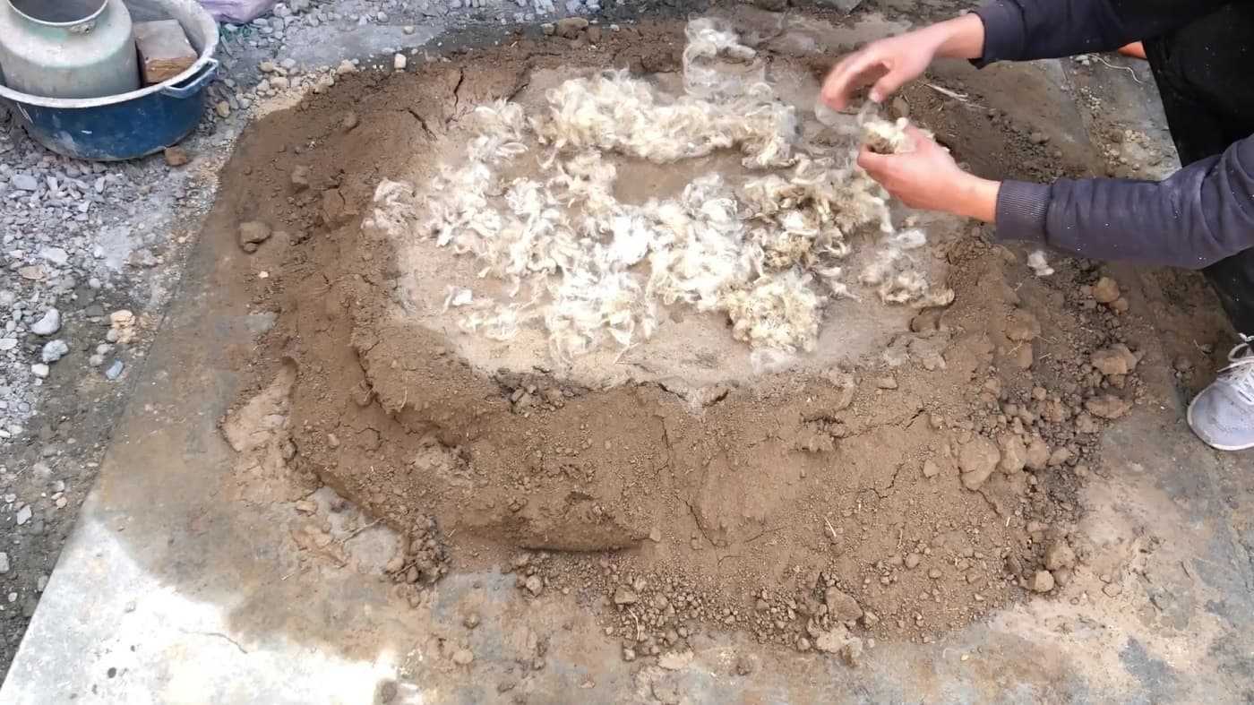 Замочим глину, добавим в неё фибру (овечью шерсть).